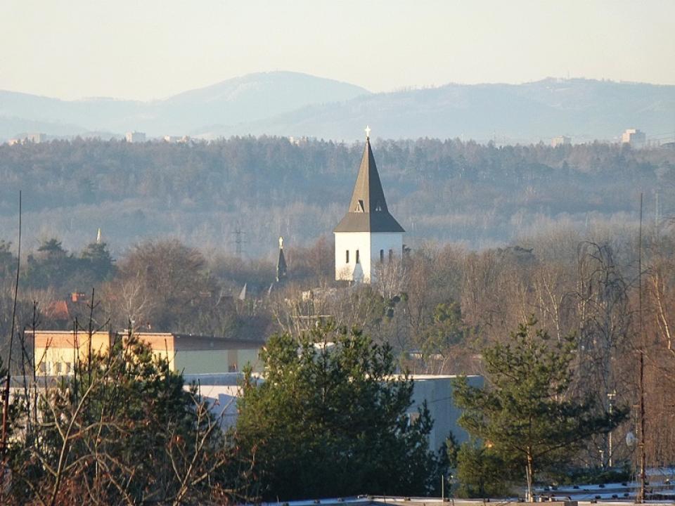 kostel a rybník v…